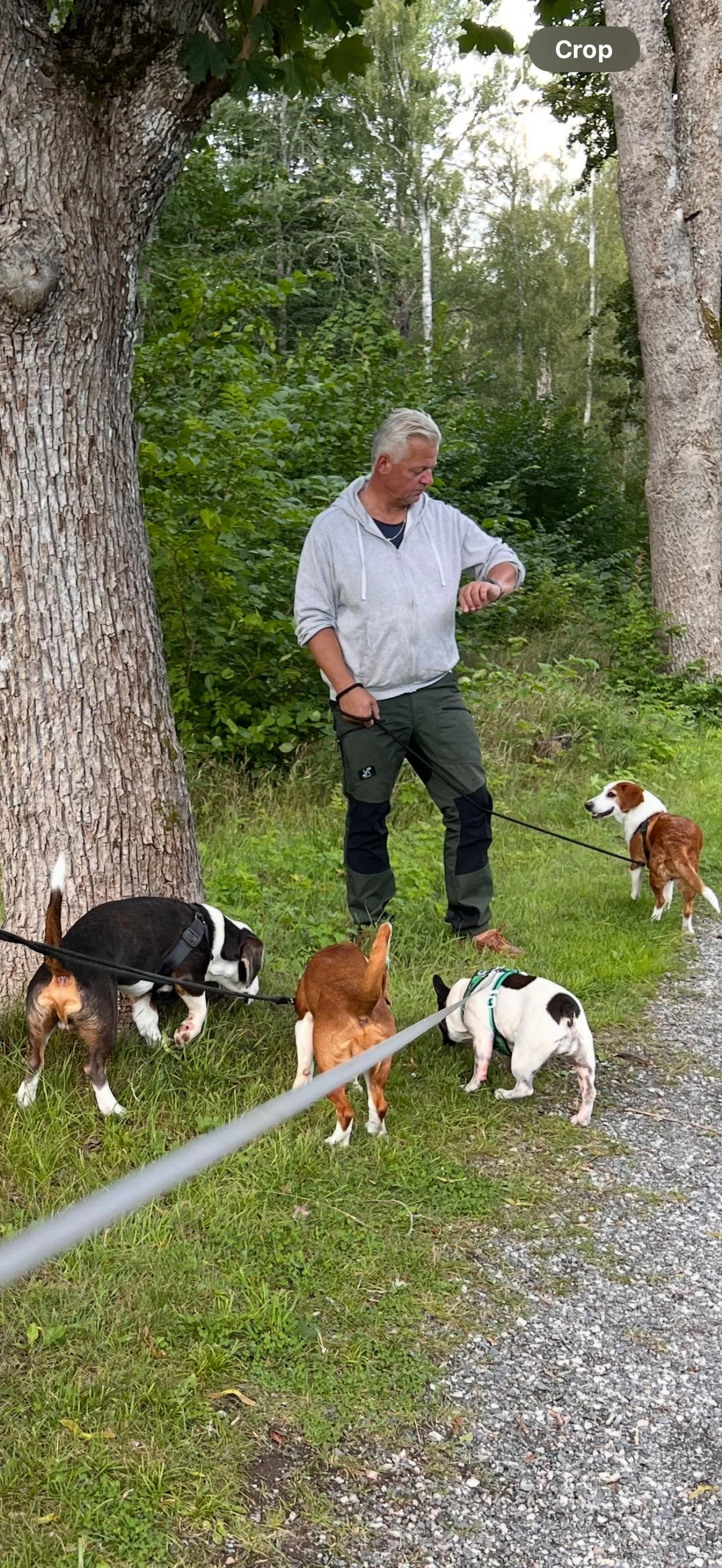 Anders with his purebreds, Bosse, Ninni, and Doris, and Cilla’s Frenchie Lola.